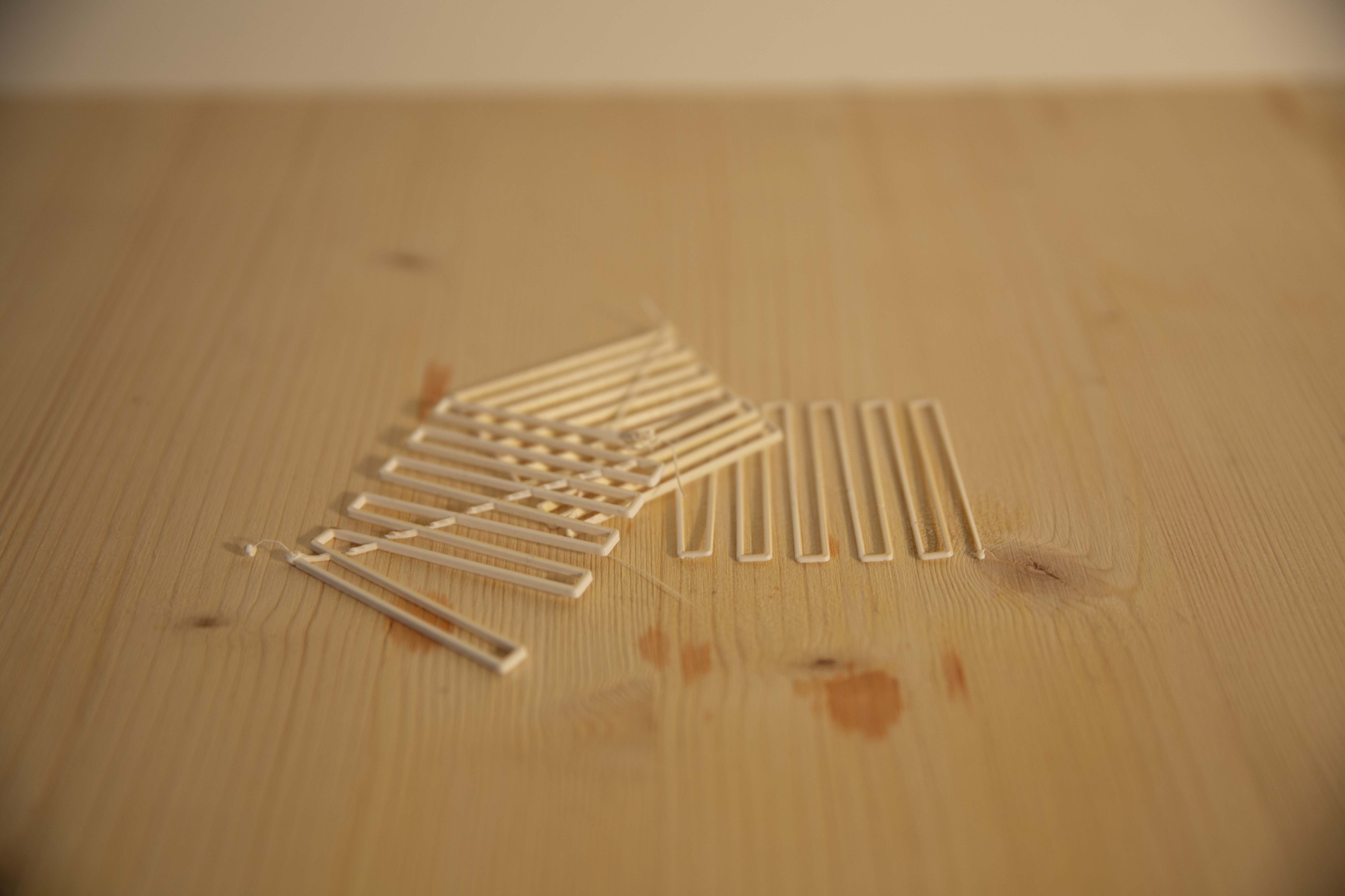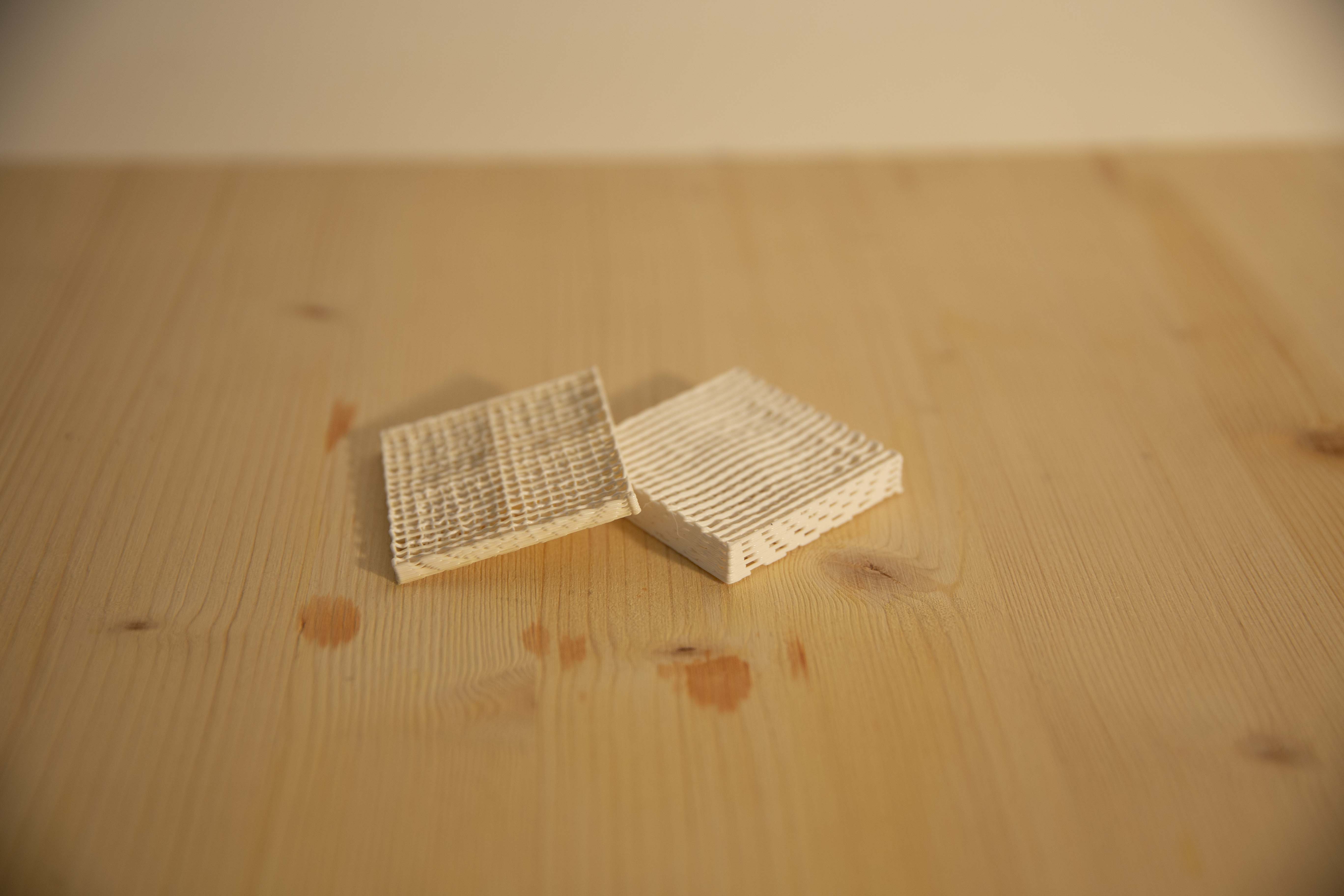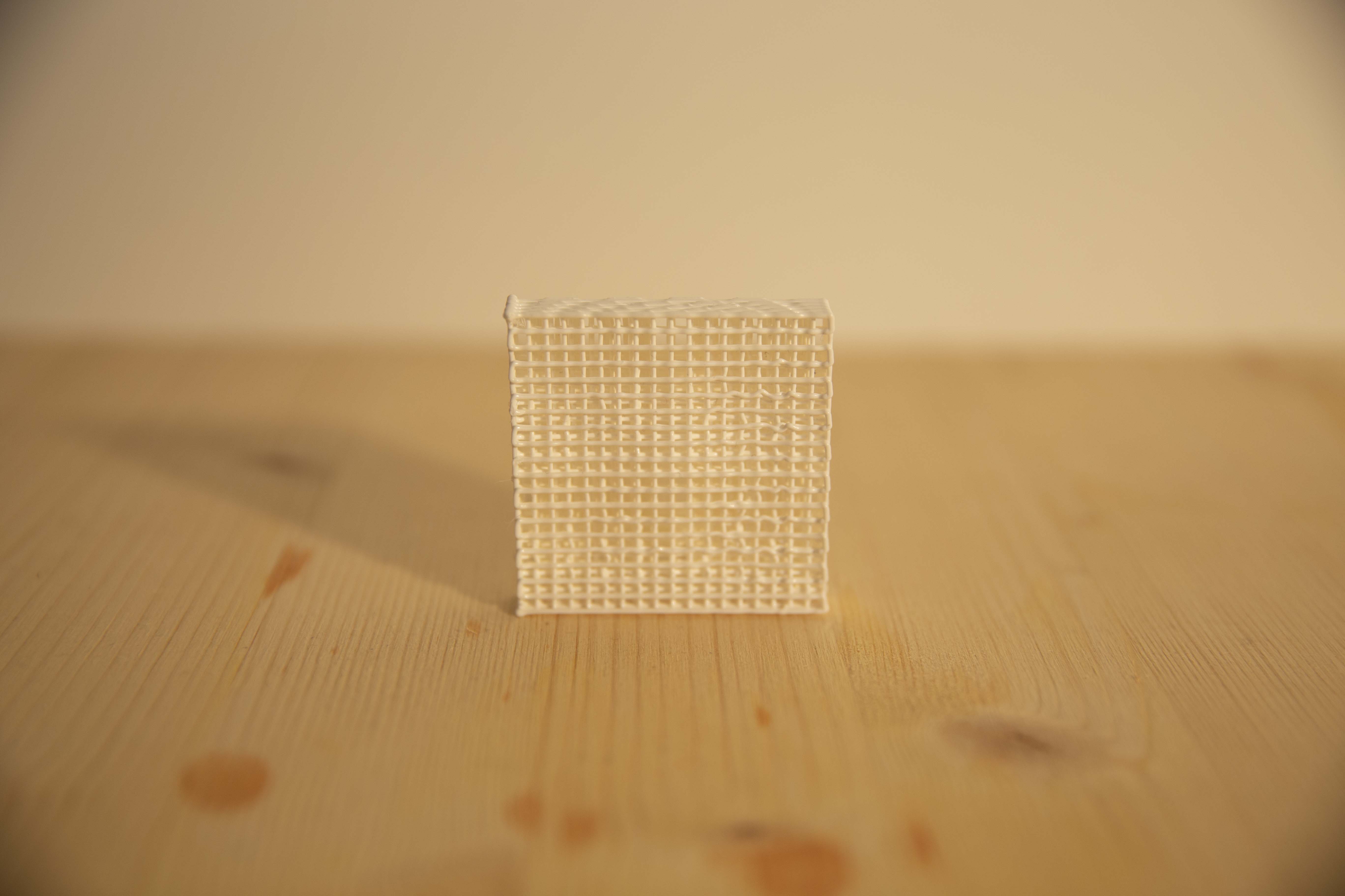 The next step was to shift the generated shapes from vase like shells towards a more filling thing. An obvious first experiment was to test a wave filling. Moving the toolpath from left to right while moving forward. It actually worked quite well, but is somehow limited to a rectangular shape. More complex geometrical forms would need some more consideration and algorithmic experimentation. However, filling and rotating layers worked as intended and created dense blocks of filament.